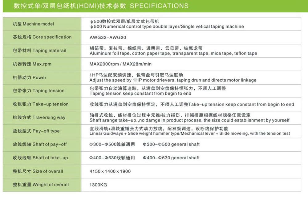 本機(jī)為立式雙層包紙機(jī),將包帶(紙帶、鋁箔等)通過轉(zhuǎn)盤旋轉(zhuǎn),繞包在芯線上,具有雙繞包頭,旋向一左一右可進(jìn)行二次繞包。主要用于電線、力纜、控纜、光纜等絕緣線芯的云母帶繞包,耐火電線電纜主要適用于電廠、機(jī)場、船舶、高層建筑、地鐵、地下街和***場所等地方。耐火電線電纜的需求量日益增大,因此多頭耐火 電線電纜包紙機(jī)的問世,為各電線電纜廠提供了全新的專用設(shè)備。